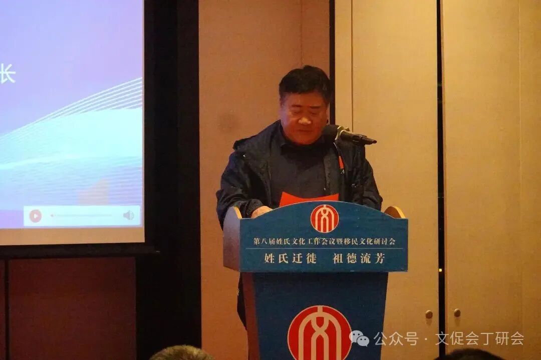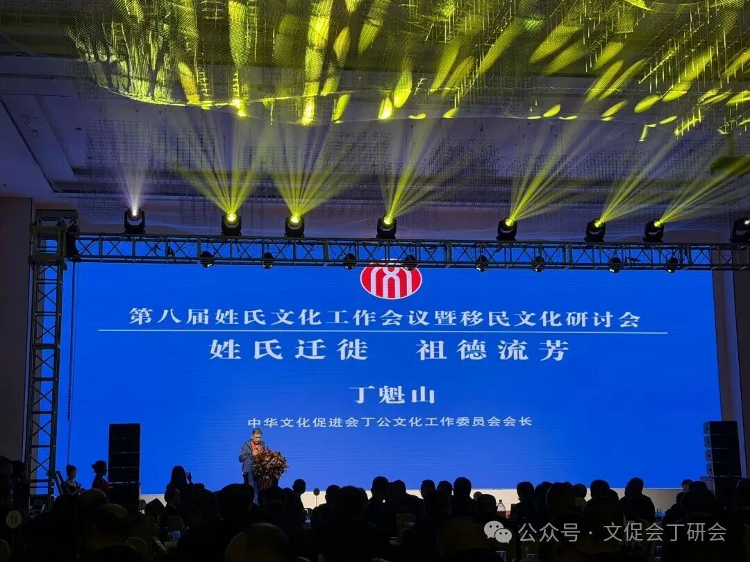 2025年11月22日一23日第八届中华姓氏文化工作会议暨移民文化论坛在湖北省麻城市举行。中华文化促进会驻会副主席陈纲、副主席崔保国、姓氏委秘书长姚刚参加会议。 来自全国22个姓氏代表约120人参加会议。本次会议由中华文化促进会姓氏文化研究会主办,中华丁公文化工作委员会承办。中华丁公文化工作委员会会长、常务副会长、副会长、监事长、监事、秘书长、执行秘书长、副秘书长,《中华丁氏总谱》编委会总编、副总编、各主编共62人参加会议。