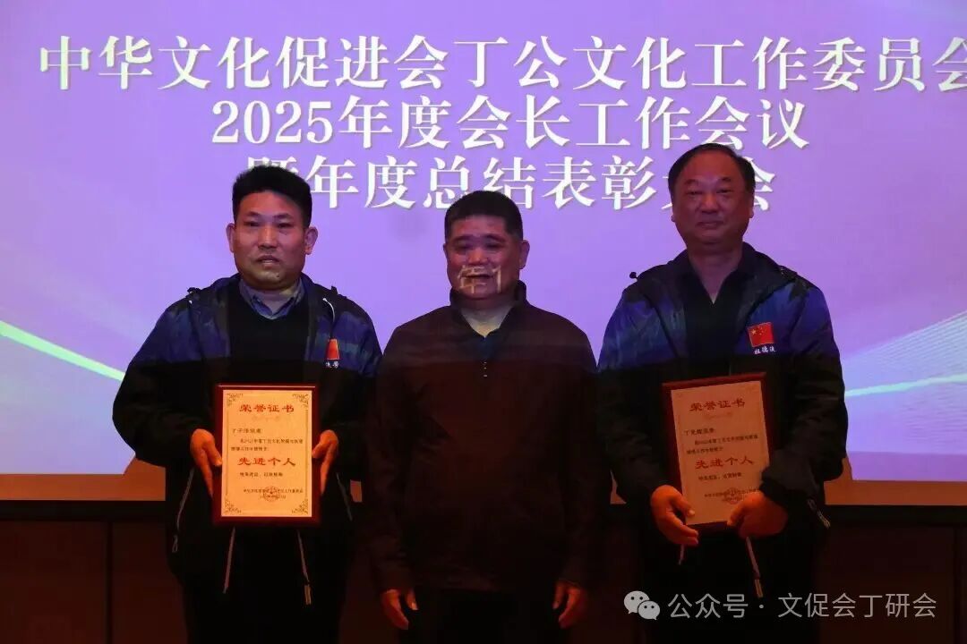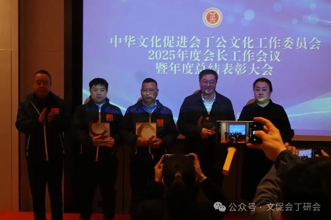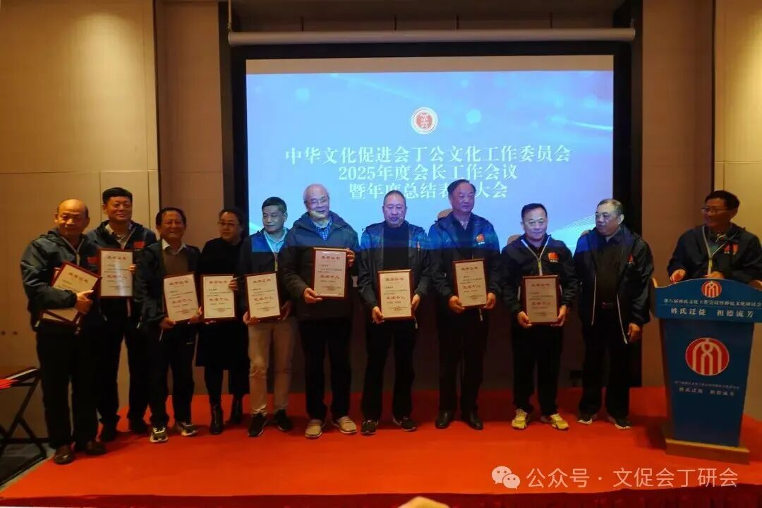 丁前进秘书长作2025年度工作报告, 丁铁锐监事长作财务工作报告, 丁唯轩常务副会长作明年工作部署 丁魁山会长向丁显平顾问,丁光明、丁文峰副会长颁发任用匾牌, 表彰了山东、安徽、湖北、江苏、甘肃五个省级丁公理事会为年度先进集体 向丁幺松、丁唯轩、丁士伟、丁姝君、丁彦超、丁昊颁发特别贡献奖。