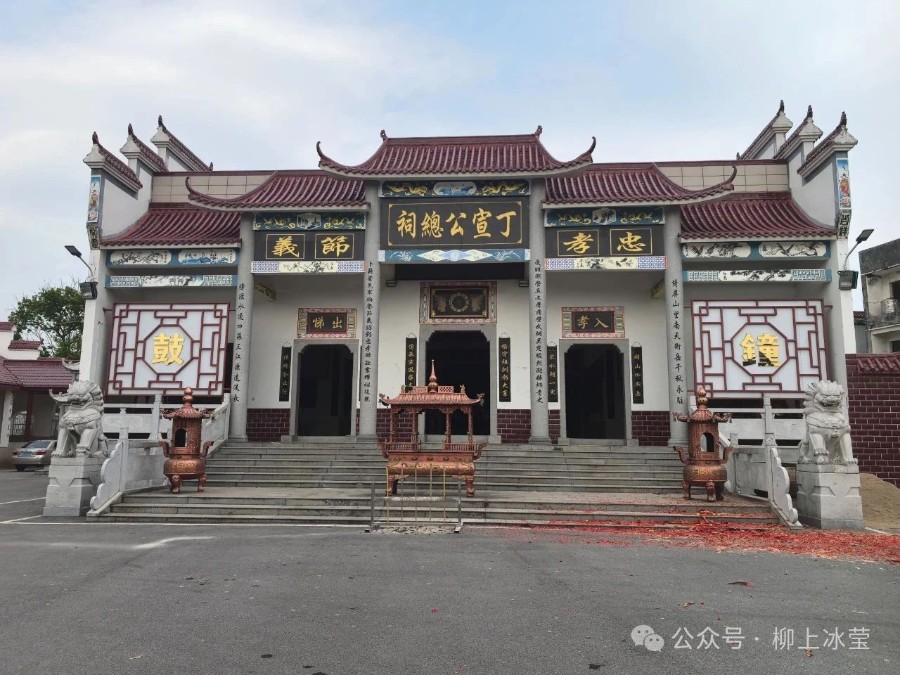 与几位热爱本土地方文化的朋友围坐在一起聊天,话题很自然地就聊到了醴陵的宗祠文化,也顺理成章地提到了移建于城东浦口镇河溪头的丁宣公总祠。大家一致认为,华夏五千年的灿烂文明,最为集中的体现,莫过于家族文化的发展与宗祠文化的传承。这种凝聚着家族情感与历史记忆的文化沉淀,是需要几代人,甚至数十代人的共同奋斗、积累与传承才能形成的。在大家热烈的讨论中,我的思绪也如同被点燃的火花,在历史的长河中自由翱翔。次日,由丁纪荣先生作向导,我与文志勇先生驱车前往醴陵浦口。这座承载着千年家族记忆的建筑,整体格局按照族谱上的古貌复原,牌坊高耸,上书“济阳世家”,入院“震耀湖湘”,字体遒劲有力,光耀夺目。祠堂以中轴线为核心,亭台楼榭在左,观音阁、英烈堂在右。世祖宣公、枢公、春公等合葬墓遵循着“前祠后墓”的传统规制,移葬在总祠一侧。祭祀空间与休闲区形成动静分野,暗含着“阴阳平衡”的哲学理念,呈现出“祖上功德数不尽,后人进取更超前”的豪迈气势,构成强大的视觉冲击,让人久久震撼。